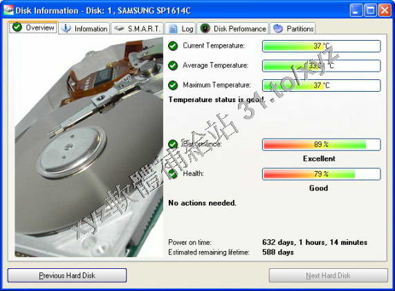 Hard Disk Sentinel 它使用 SMART 技術監控硬碟健康、性能,及溫度等重要參數。
