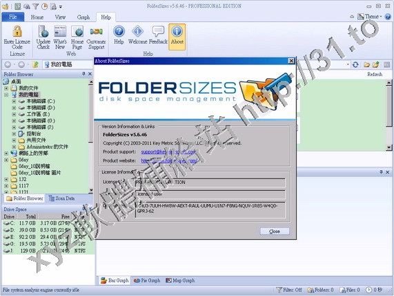 • Key Metric Software FolderSizes v5.6.46 Professional Edition x86 英文正式版(硬碟空間分析工具軟體)