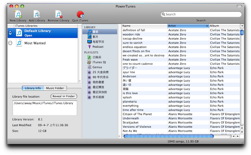 PowerTunes allows iTunes users to create multiple libraries,