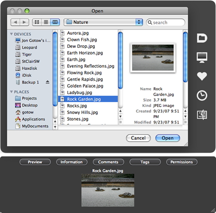 Default Folder X improves the Open and Save dialogs in Mac OS X.