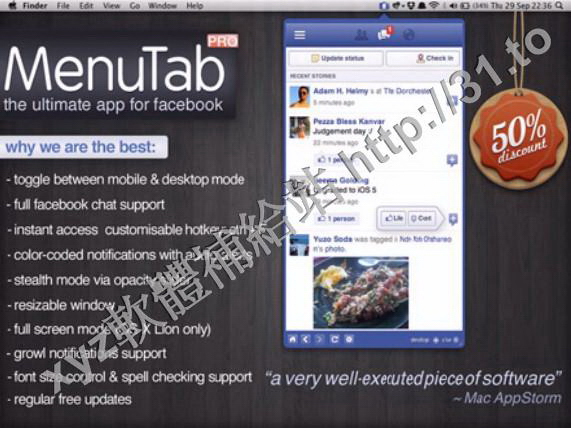 • MenuTab Pro for Facebook v5.9 MacOSX 英文正式版(Facebook 快速訪問軟體)