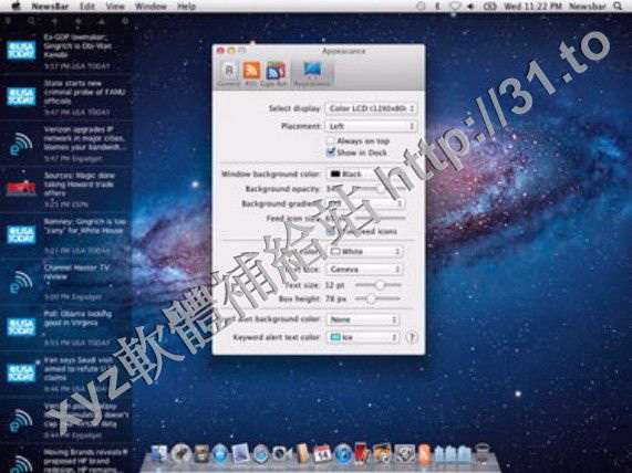 • NewsBar RSS reader v3.0.1 MacOSX 英文正式版(與眾不同的RSS客戶端軟體)
