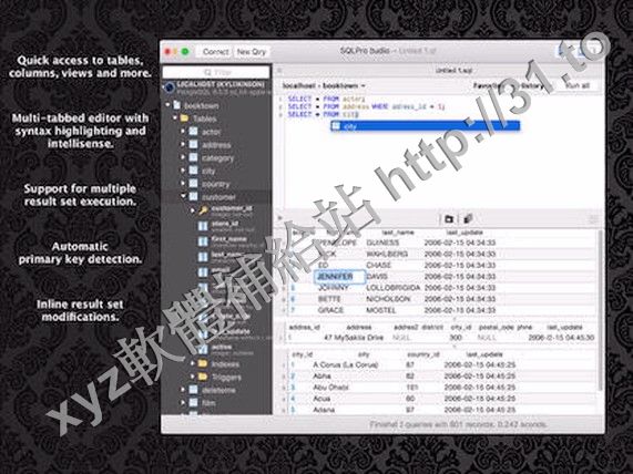 SQLPro Studio是一款Mac上優秀的數據庫客戶端,支持Postgres, MySQL,Microsoft SQL Server,