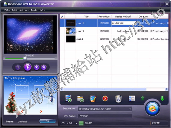 Joboshare AVI to DVD Converter是一款強大的DVD視頻製作工具,可以將AVI, MPEG, DAT,