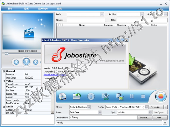 • Joboshare DVD to Zune Converter v2.9.5.0925 英文正式版(音視頻轉換軟體)