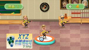 團的「交響樂團指揮」、依照樂譜指示使用 Wii 遙控器與雙節棍控制器進行 1~4 人手
